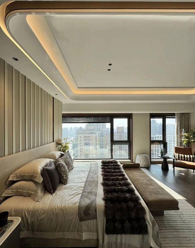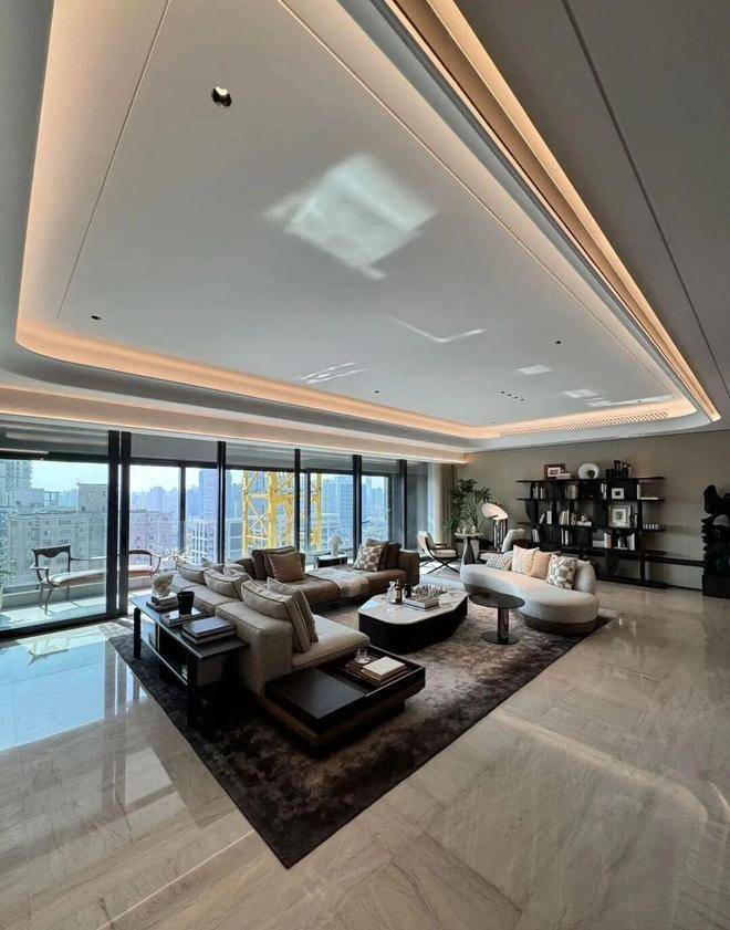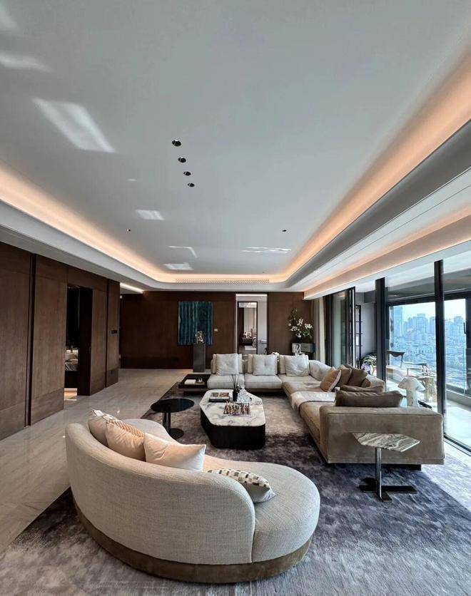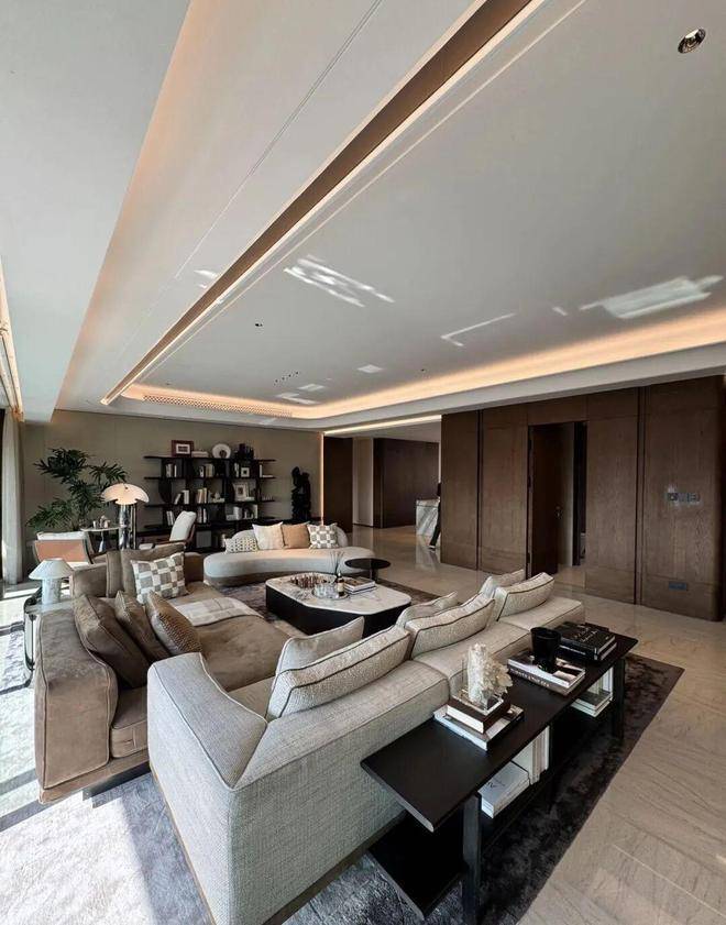 硬装:葡萄牙米黄石材 + 古铜金属线条,全屋大理石