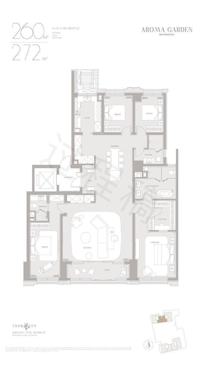 会所:约 5000㎡私人会所(恒温泳池、私宴厅、红酒窖、天际观景台)
