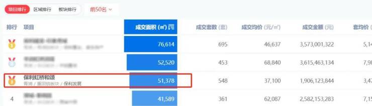 首先,2024年保利虹桥和颂两个地块总成交面积位列青浦TOP3。