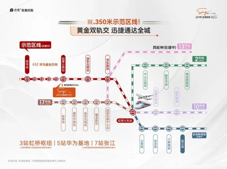 保利虹桥和颂·IN255是当下少有的真轨交房,直线距离示范区线(在建)赵重公路站仅约350米。