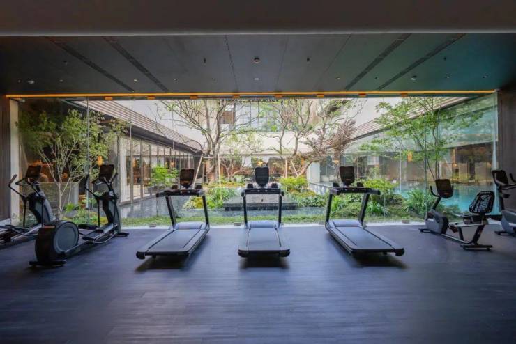健身房的落地窗项目也做了可全开合的设计,业主在跑步、慢走的运动中,可以看到庭院的景观,更能呼吸到来自室外的新鲜空气,创造更愉悦的运动体验。