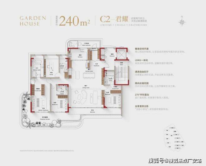 再来看看户型设计,完美呼应了四代宅的超高使用率,空中露台、阳台等各项数据的尺度非常惊人。