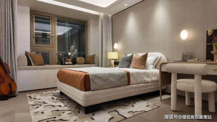 次卧同样是套房配置,与主卧分列客厅左右,这样两代人不仅保持了各自独立性和私密性,在舒适度上也接近。