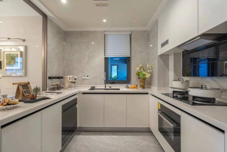 建筑立面融合滨江33年精湛工艺,采用四面铝板设计,当然内天井、外天井及设备阳台的外墙面采用涂料,底层局部点缀石材,铸就「滨江精选」品质标杆。在整体设计理念上,摒弃了复杂的装饰材料和冗余线条的堆砌,引入现代建筑的设计思维。在工艺细节处理上,运用斜切工艺,增强了外立面的几何感和立体效果,同时搭配圆弧型材的巧妙应用,使建筑整体呈现出柔和而自然的视觉效果。项目采用全封闭式阳台设计,不仅使空间利用更加高效,也使得居住环境更加整洁、舒适。