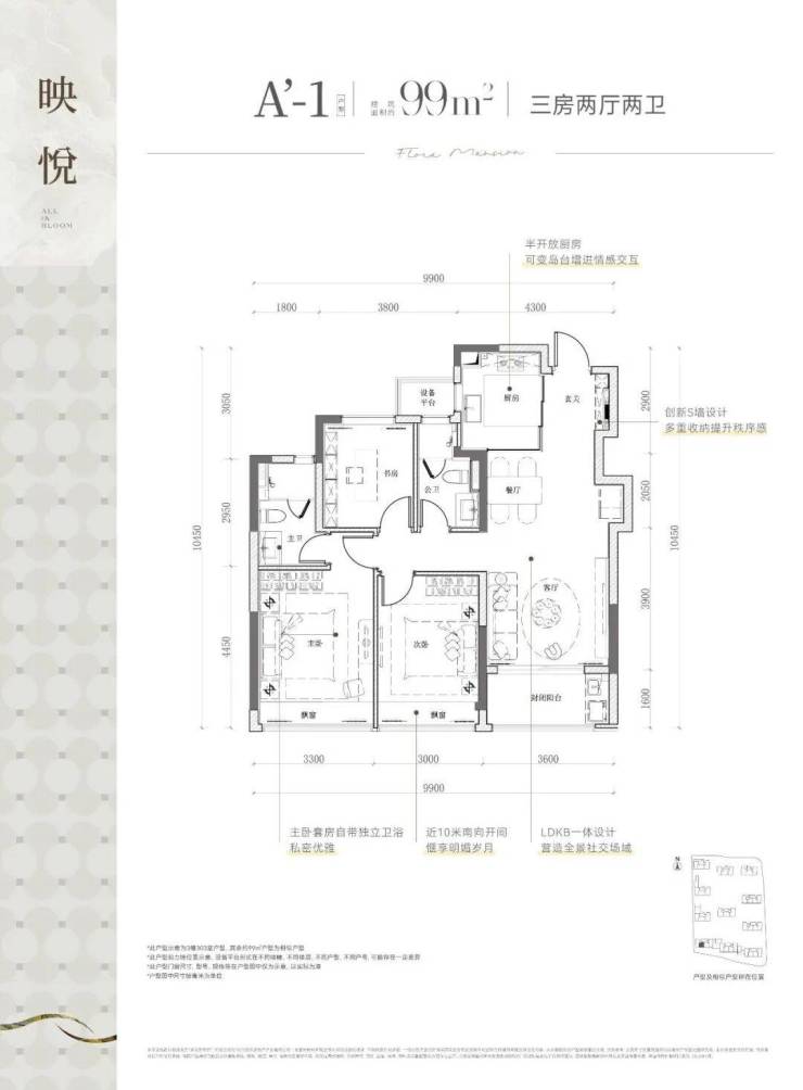 项目总建面约9万方,规划11幢12-16层纯高层,采用"南低北高"的错落布局,建筑限高50米,楼幢间距预计较为开阔,错落式布局,打造了两大主题园林空间。推出建面约99㎡与113㎡精致三居室,以及建面约108㎡、120㎡、128㎡、139㎡宽敞四居室,满足不同家庭需求。