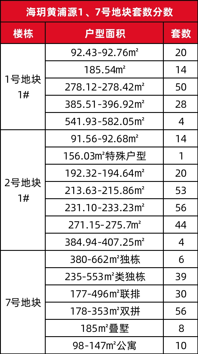 The approximate distribution of the number of units for the super high-rise residential units in plot 1 and the style villas in plot 7 is as follows: 👇