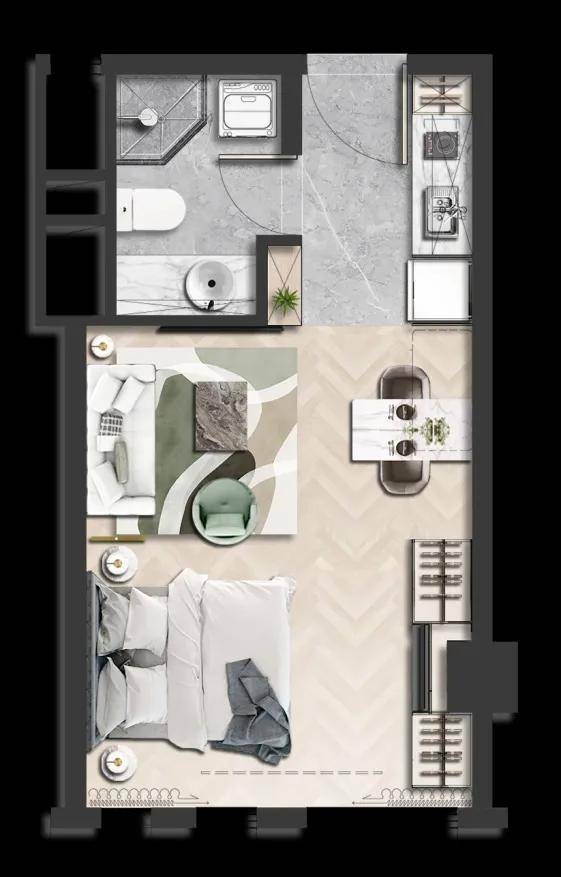 全部采用一线装修大牌,装标不低于3800元/m²,真正的精装智能全配公寓,拎包入住。