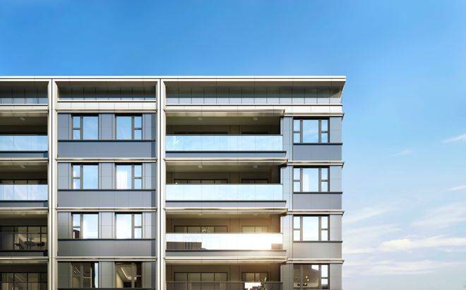 外立面风格采用现代简约的建筑风格,采用灰色系外立面,辅以香槟色铝板进行勾勒,同时增加金属网装饰;