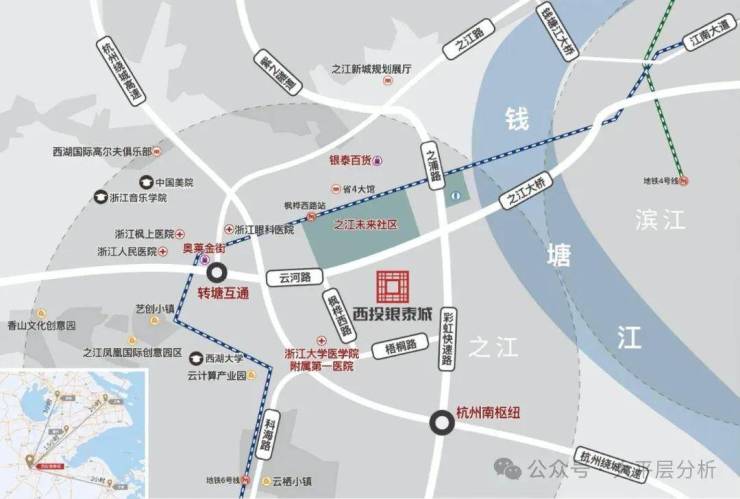 地铁6号线&12号线(在建)双地铁,实现与杭州各区的高效链接;紫之隧道、彩虹快速路双轴贯通,之江隧道(2025年底开通),15分钟迅达滨江、西溪湿地、西湖九溪,20分钟达钱江新城,30分钟直达奥体。