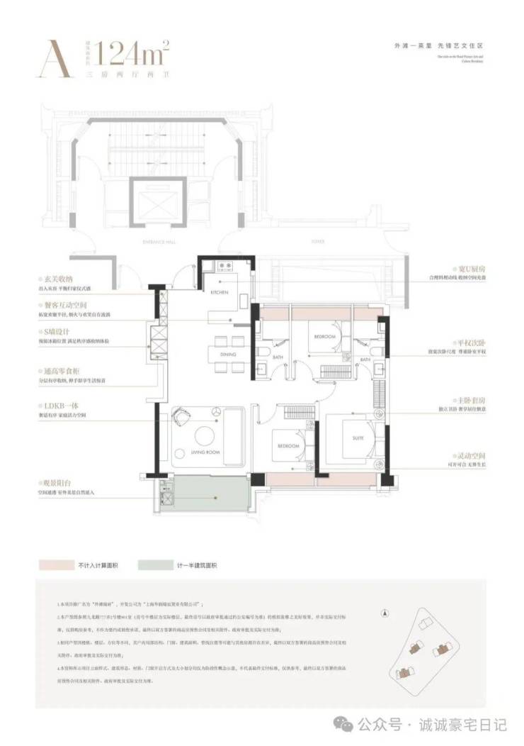 124㎡三房是南北通透的全明户型,客厅面宽达到4.5米!!!三开间朝南设计;“S”墙收纳、卧室全飘窗延伸空间,每个卧室开间尺度均超过3米,完全满足改善居住的收纳需求!室内空间尺度优秀!