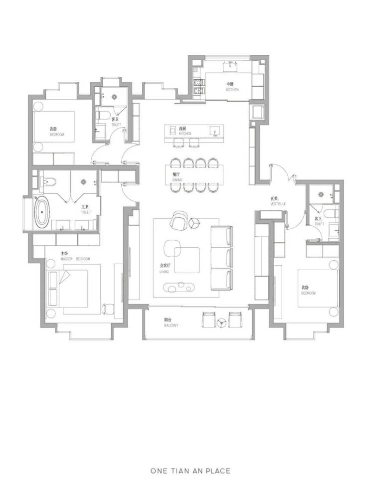 百平米2房2卫相当于双套房设计,居住舒适度拉满!