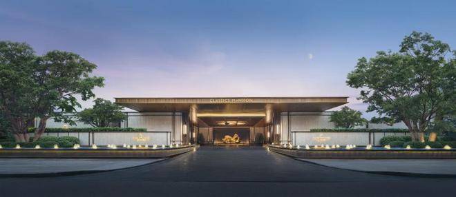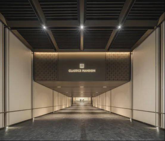 酒店入户同样是对标半岛酒店,车马院落客区的檐口、标识、星空顶等,增强入户的仪式感和奢华感。落客区的接待门采用海鸥丽晶酒店同款,尽显酒店式归家体验。