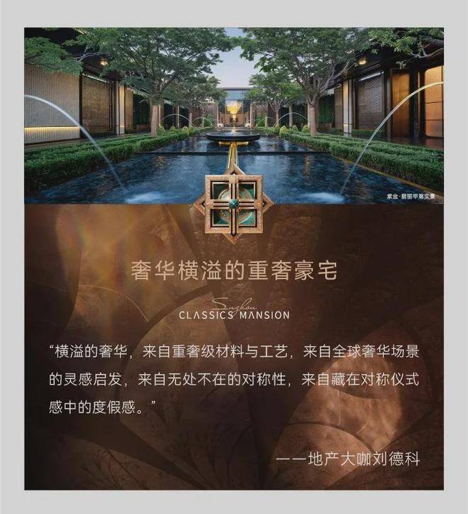 项目从建筑、园林、会所、室内均由世界级大师设计团队,goa 大象设计、朗道国际设计、CCD全球事务所、无间设计、梁志天设计师集团操刀,打造前所未见的奢华生活方式,真正刷新苏州豪宅新标准。