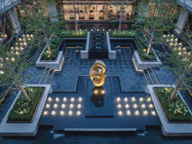 景观设计上,将东方园林造景的意境与意大利海派风格相融,中轴对称,以两轴两园三进礼序,打造高奢酒店式艺术生活园境。
