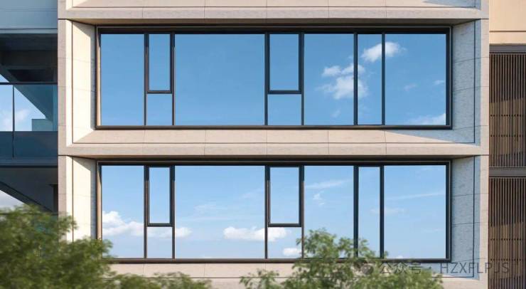 ▶鎏金高层:几何线条丨米黄色仿维纳多石材铝板丨香槟色金线丨深灰色金属格栅丨三玻两腔LOW-E玻璃