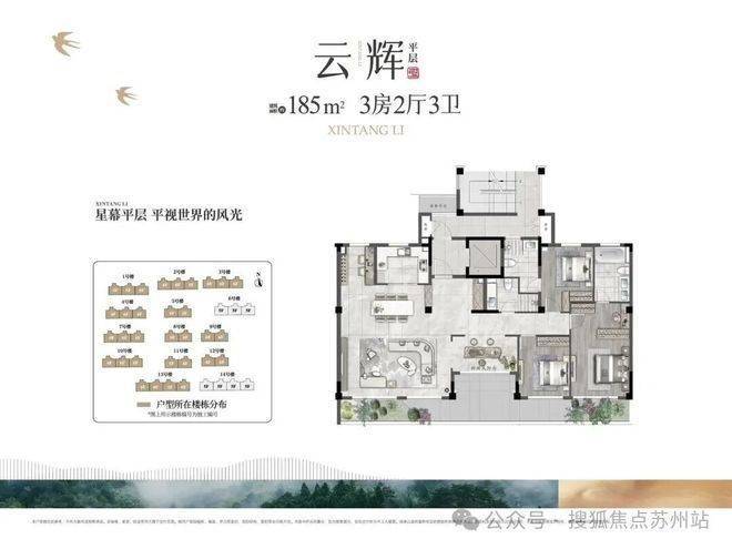 平层(185㎡):406-440万(3房2厅3卫)
