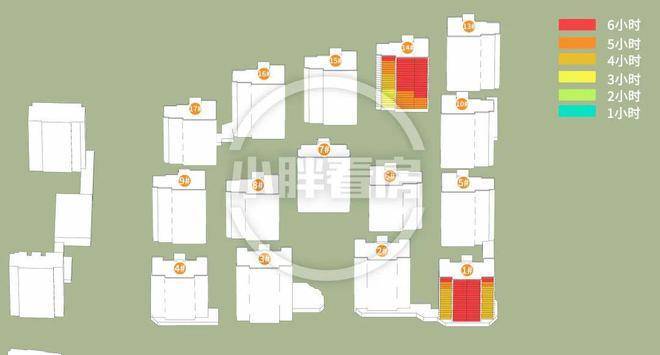 滨江时舟里的分析结果是这样:计算已考虑周边所有建筑的影响,结果表明周边建筑不会对本次开盘楼栋产生遮挡,楼栋仅受地块内部遮挡。(说明:本文日照数据基于公示规划图纸文件,使用专业制作工具完成,仅供参考)