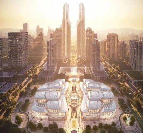 以约70米宽的尺度,约9米高的鎏金天幕铺开。跨过这道门后,越往里走,越感受到未来绿城的水准。