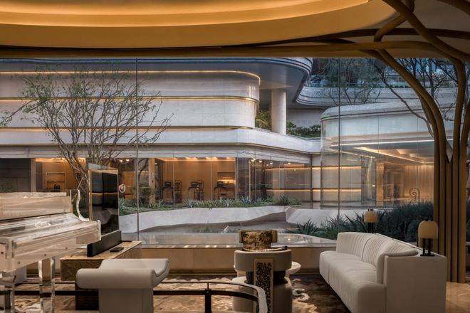 从峡谷的自然语言中提炼出现代设计美学,以精致细腻的大理石为基底,融入金属线脚点缀,既提升产品的品质感,又增添精致优雅的氛围。蜿蜒递进的空间布局巧妙引导人们由外向内步入中心庭院,营造层次分明、循序渐进的空间体验。
