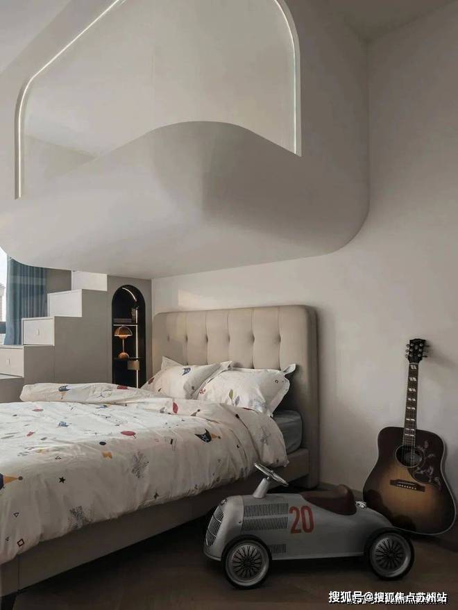 想象需要空间,童真需要守护.床体一侧设计楼梯,沿着台阶往上走,便到了孩子的小小世界.