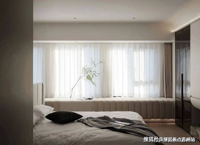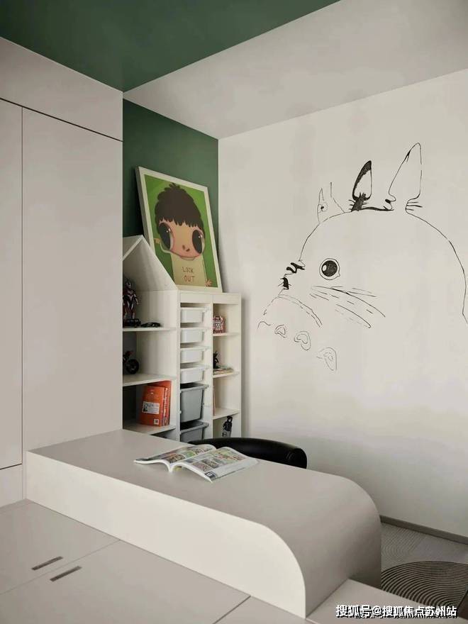 美观与功能想要兼得,可使收纳处变得更加隐形,空间一宽,心也宽了.秩序感在撞色壁柜将区域的划分中,逐渐清晰.工作台与床体的“头碰头”,也让突然的灵感有了安放之地.