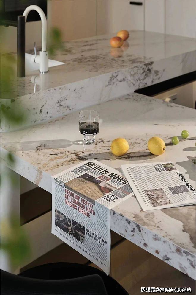 空间与光线的友谊沿着极简走向无尽.嵌入式厨电,使得布局更加开阔明了,将突兀二字尽数抹去.泼墨大理石台面由几抹亮色点缀,奢雅之中巧露活泼生动.