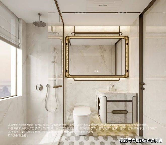 保利外滩曜售楼处电话:400-8818-994(官方售楼处电话) 双曲面浴室镜柜一体成型,无拼接痕迹,内置美妆冰箱、美妆龙头,天花板还有大排灯加持,每一次洗漱都是极致享受。