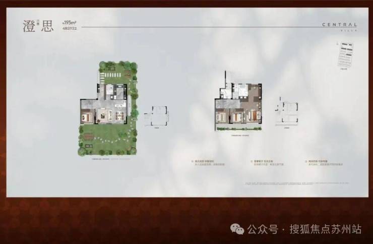 叠加约169/193㎡,均为4房3卫的舒适户型,房间全部朝南+客厅挑空。
