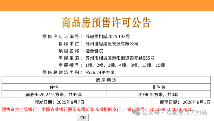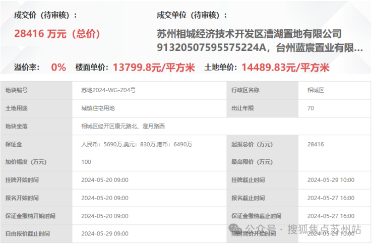 满园,即漕湖置地元和4号地块项目,位于相城区经开区康元路北、澄月路西,由漕湖置地&蓝宸置业&旭辉建管以底价28416万元竞得,成交楼面价为13800元/㎡。