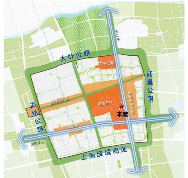田字绿廊:S4高速公路、东方美谷大道与新城四至围合而成