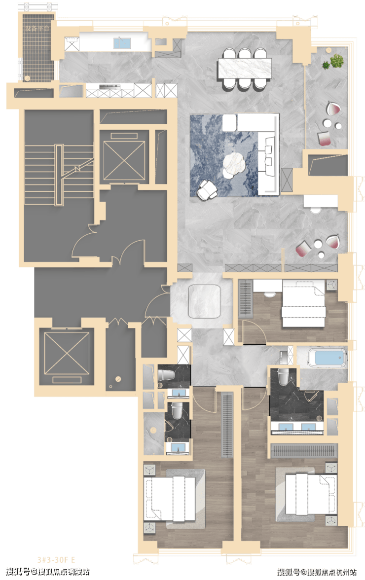 该栋楼拥有尊贵感、舒适度、使用率MAX的户型。建面约193、237㎡为类一梯一户设计,拥独立门厅;建面约302㎡标配两梯一户,排面和仪式感全部All in。主卧堪称星级套房,配置独立衣帽间、双台盆+淋浴空间+大浴缸。另外,安排多重收纳,让每一个空间都能高效利用。