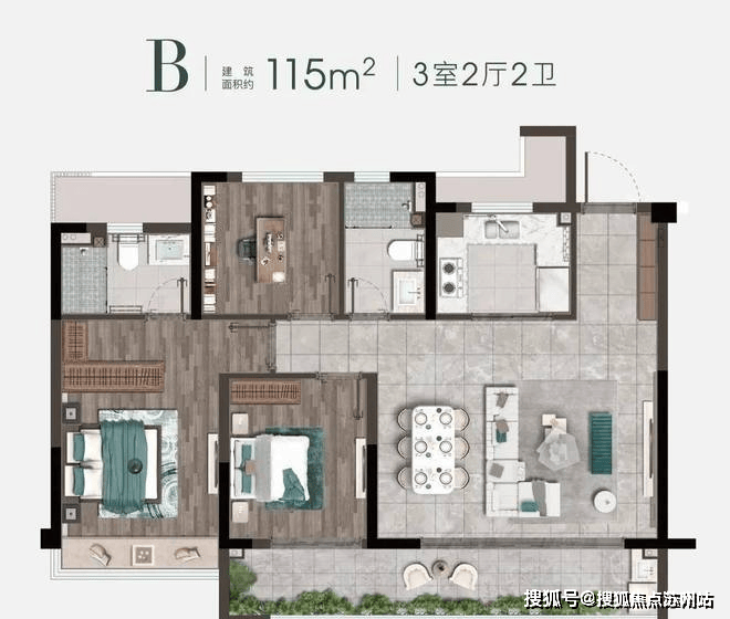 建面约115㎡户型