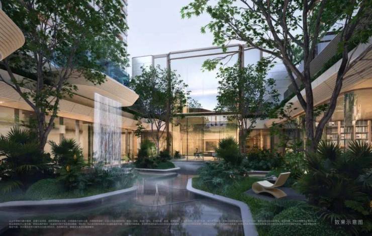 •立体浮岛:通过地上地下丰富动线串联下沉庭院、局部风雨连廊、戏水池、行车橱窗、垂直森系景观、嵌入式会所功能,创造一座立体视觉奇观的“漂浮的绿洲”
