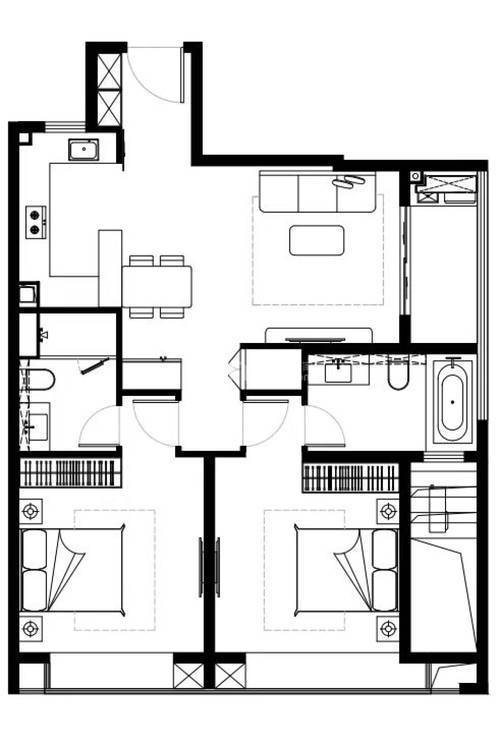 2、 二居室:公房面积:50-70平米;商品房面积:70-100平米;