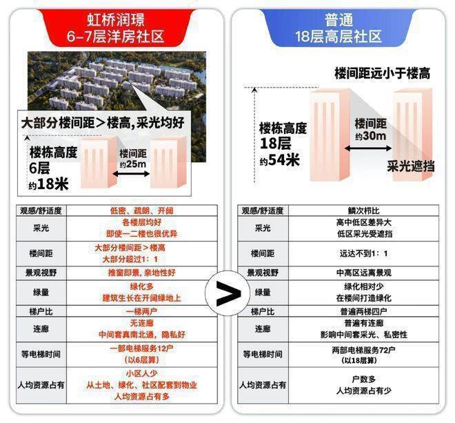 比如楼间距,虹桥润璟楼间距:楼高都超过约1.2:1。