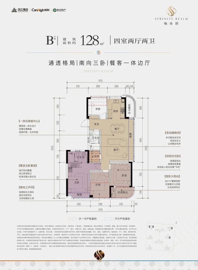 入户独立玄关空间,LDK一体设计,还做到了南向三卧设计,实用性更高;三房朝南,主卧套房、次卧带270度瞰景飘窗,约9.75米的南向超大采光面,将这个户型的阳光指数拉到了“峰值”;自带多功能储物间,让家更整洁有序。