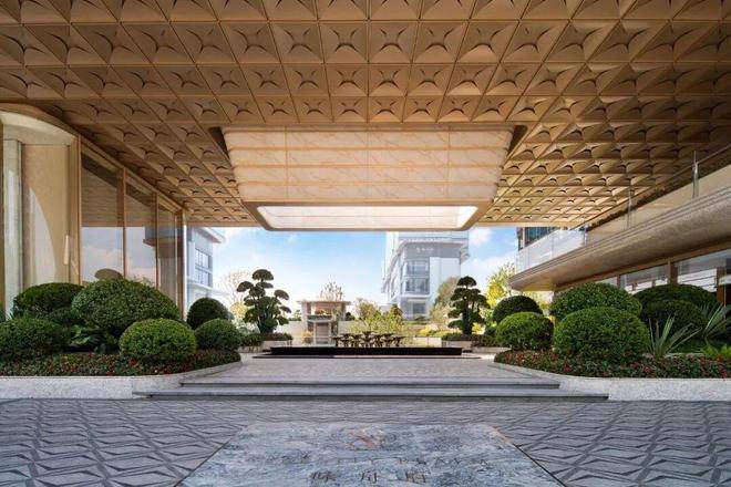 走近项目,约85米超级画幅门厅的第一笔,飞扬在高约9.5米的领域感门头之上,搭配鎏金天幕铺陈,营造出精致、轩昂、高级的华宅氛围,归家的第一眼就有惊喜的体验。
