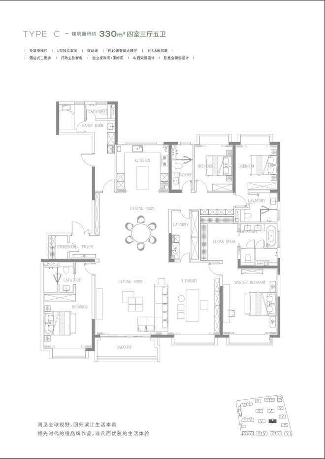 建面约206-330㎡大平层收官发售均价约12万/㎡可直接选,都还是准一梯一户的设计。