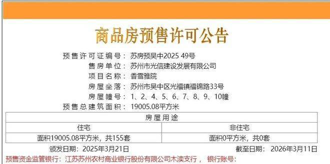 在拿地两年多之后,位于光福的纯新盘光信香雪雅院首次取证了!