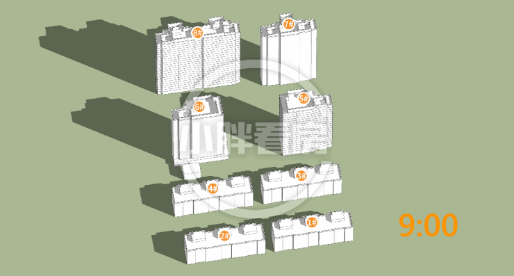 夏季:由于楼栋建筑朝向为东南偏转和夏季太阳角度原因,楼栋在下午处于阴影中,日照缺失,不过反而有利于减缓夏季西晒。