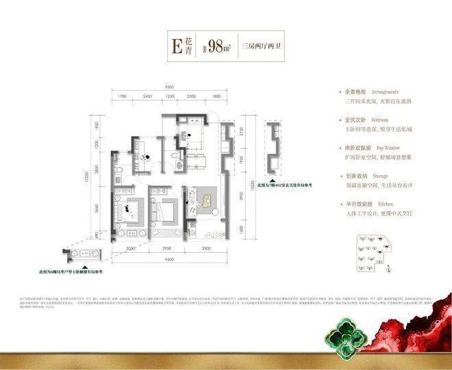 建面约98㎡百平内稀缺小户S墙设计、库式入户玄关、半开放式厨房、三开间朝阳格局,赋予空间与家庭同步生长的张力,让空间越住越大。