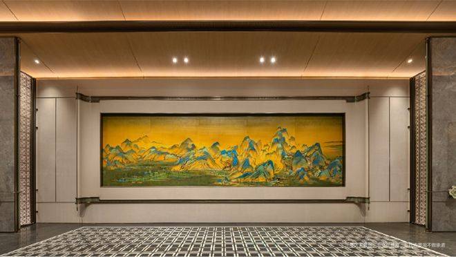 建发瑞湖官方售楼处电话:400-8818-994【预约☎】穿越门厅,九米巨 幅《千里江山图》非遗漆画豁然呈 现,天然大漆历经千道工序,再现青绿山河的壮丽磅礴,昭示着“归家,便是走入一幅传世名画”的崇高礼序。