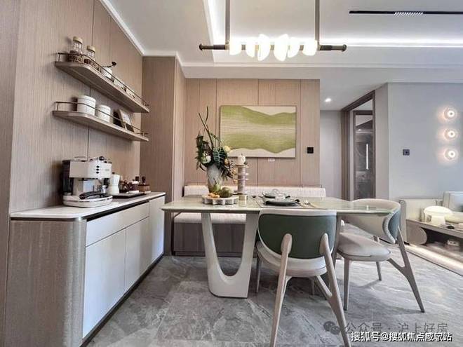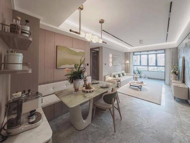 第三个亮点,是客餐厅一体化设计,外连阔景阳台,采光非常好,空气更加流通,同时增进了家人间的互动。