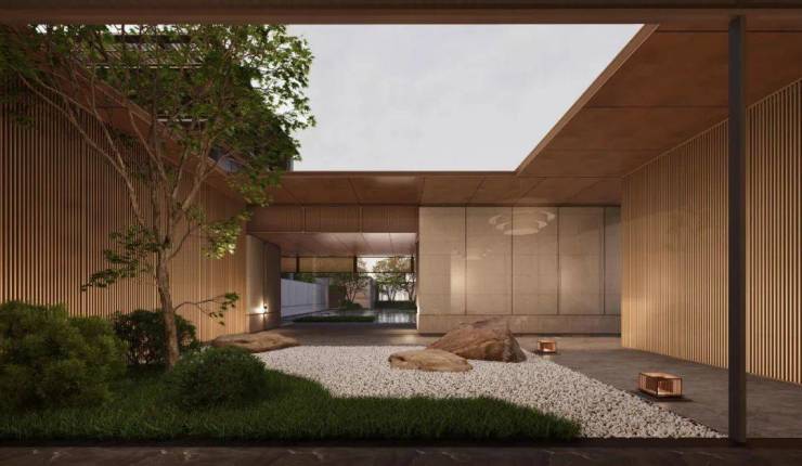社区景观设计上,设置一轴五象五巷五色两谷乐活的景观空间,五进式空间体验,打造东方礼序的归家仪式感。