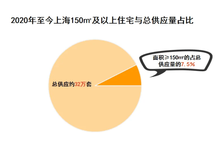 2020年至今,整个上海新房供应超32万套(不含别墅类产品),约150㎡及以上的大户型套数仅占7.5%。