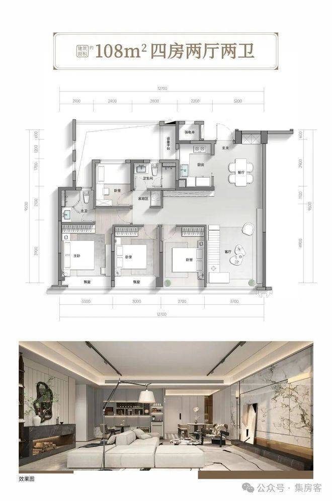 建面约108-139㎡低密高层产品,在保亿的精心设计下,更是迎来了相对于传统高层产品的全面迭代升级。约108㎡中间套突破传统格局,以约12.7m南向采光界面重构阳光生活尺度,四室两厅全能空间满足家庭全周期需求。