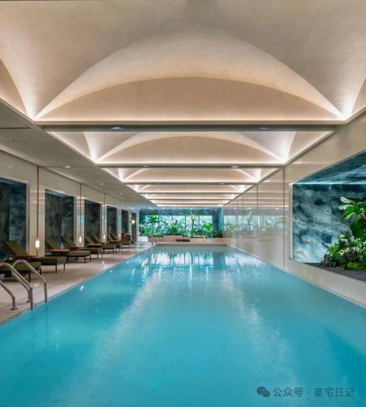 会所由琚宾老师操刀,面积约2000㎡,地上大堂面积700+㎡,地下大堂面积1700+㎡(不含架空层),架空层面积约1700㎡,“楼王”架空层800㎡+;采用美学弧形玻璃+流光幻彩铝板,高施工难度与成本,换来极具冲击力的未来感外观;配备餐酒吧设备、艺术光厅、上海首个度假感植物园泳池,并围绕女性业主的需求打造女性友好健身房,专属设计了适配女性的器械,如Eleiko多功能架、瑜伽室、补妆间等,同时提供健康管理服务。