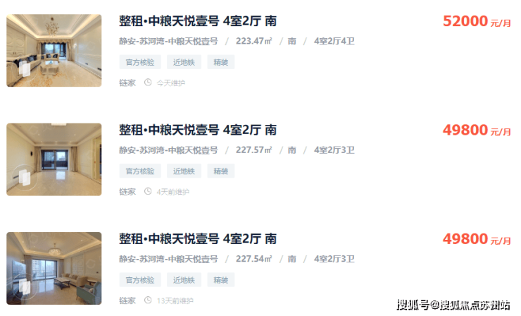 那附近能租多少钱?我们拿中粮天悦壹号相似面积来参考一下: