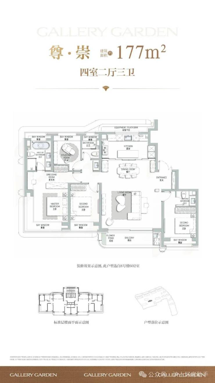 建面约177㎡户型是本批次的重点户型,总价约2300-2500万级,改善一步到位,后续再无!阔朗的四开间朝南设计+双套房设计,保证不同家庭成员起居的私密性。
