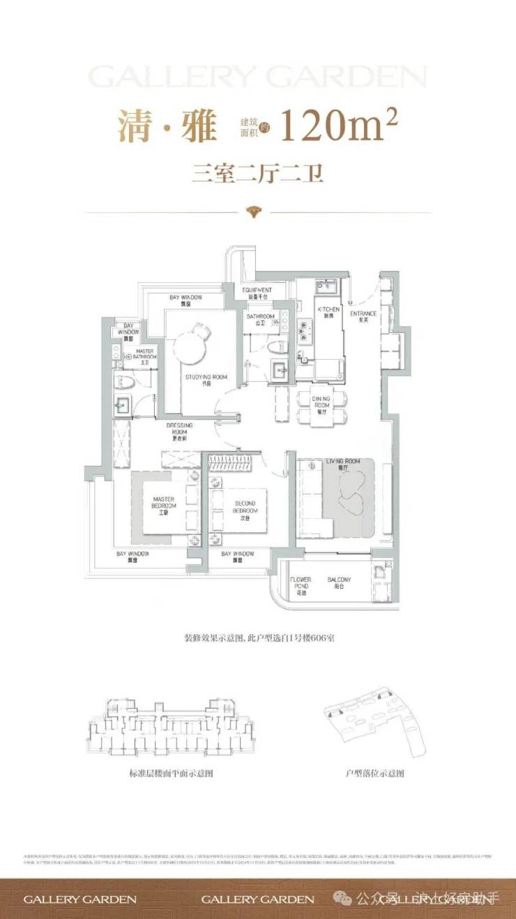 建面约120㎡的户型,定制LDKB一体化宽厅,更舒适的功能定制,270°转角窗观景套房设计,实现了居住品质与观景的完美结合。